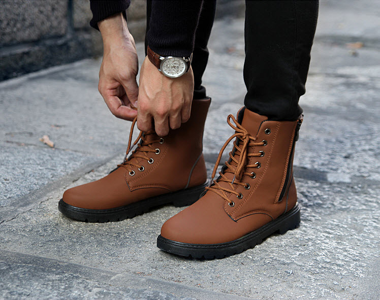 รองเท้าบูทผู้ชาย พร้อมส่ง รองเท้าหนัง รองเท้าหุ้มข้อ สีน้ำตาล แบบผูกเชือก ใส่แบบสุดเท่ ขนาด : เบอร์ 39, 40, 41, 42, 43, 44 สี : น้ำตาล