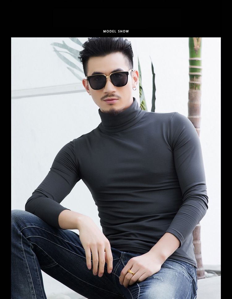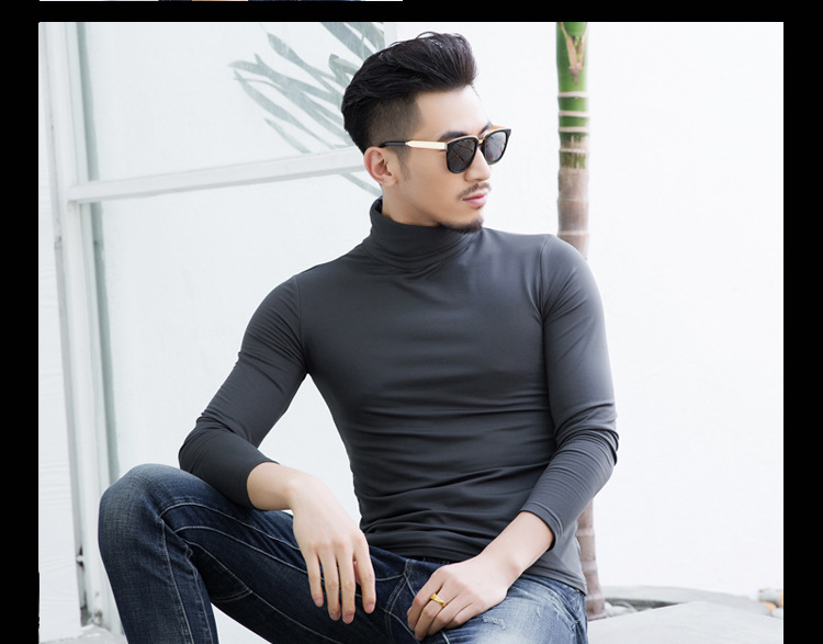 เสื้อไหมคอเต่า สีเทา แขนยาว เสื้อเข้ารูป แนบตัว สเวตเตอร์ผู้ชาย ผ้ายืดหยุ่นได้ดี ใส่กับสูทก้อเท่ห์ ใส่กันหนาวได้ เนื้อผ้าcotton ผสม spandex เนื้อลื่น ไม่ขึ้นขุย