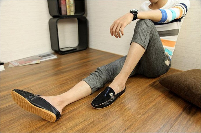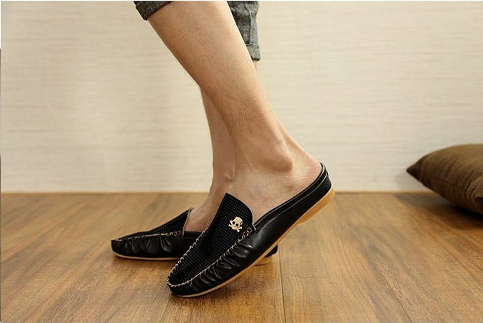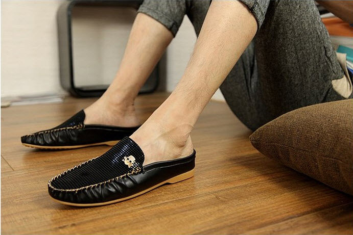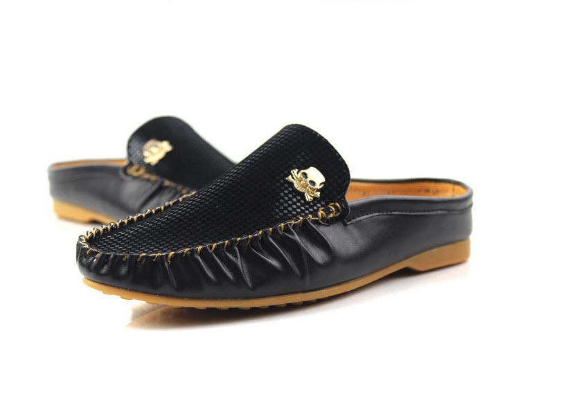 พร้อมส่ง รองเท้าผู้ชาย รองเท้าหนัง PU รองเท้าแตะ รองเท้าเปิดส้น สีดำ ใส่ลำลอง ใส่เที่ยว สี : ดำ ขนาด : 39, 40, 41, 42,43, 44