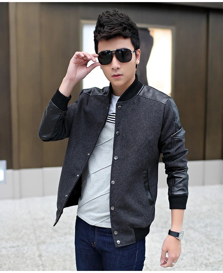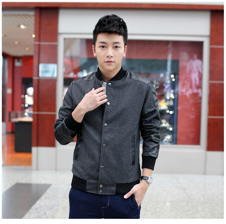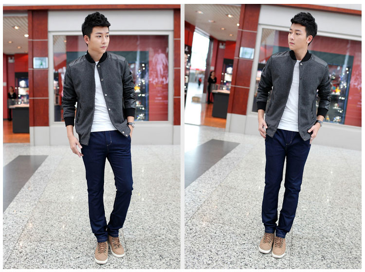 เสื้อแจ๊กเก็ตผู้ชาย พร้อมส่ง สีเทา แขนแต่งหนัง บ่าแต่งหนัง แขนจั๊ม เอวจั๊ม กระดุมหน้า
